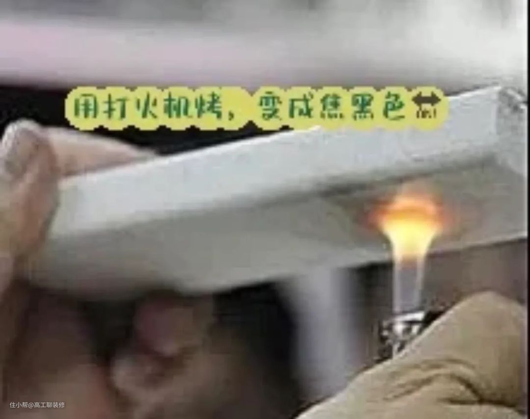 石英石有耐高温的特性,300℃以下是不会对其产生任何影响,将点着的烟头按在台面上,或者用打火机直接烧,没有痕迹的是真货,有焦黑痕迹的是假货。
