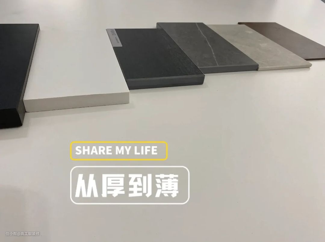石英石一般要比岩板厚,主要是因为岩板追求颜值,所以做了超薄的处理。