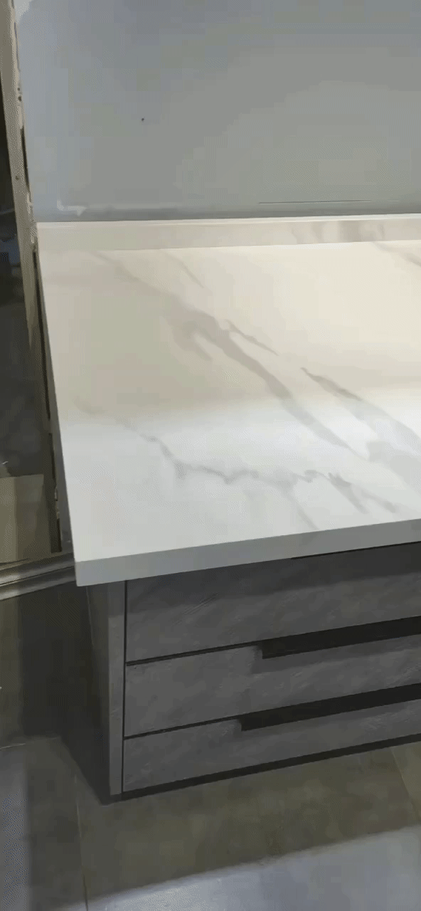 厨房台面有时候会在上面垛排骨、垛肉馅等,如果剁排骨的频率次数比较多的话,岩板太薄就很容易开裂,而12mm以上厚度的岩板才适合。