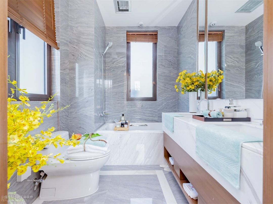 现在大多数家里的卫生间面积很小,如果出现面积大的卫生间,特别是生活在北方的网友,冬季为了能够让卫生间室内温度温和舒适,建议地面考虑地暖。