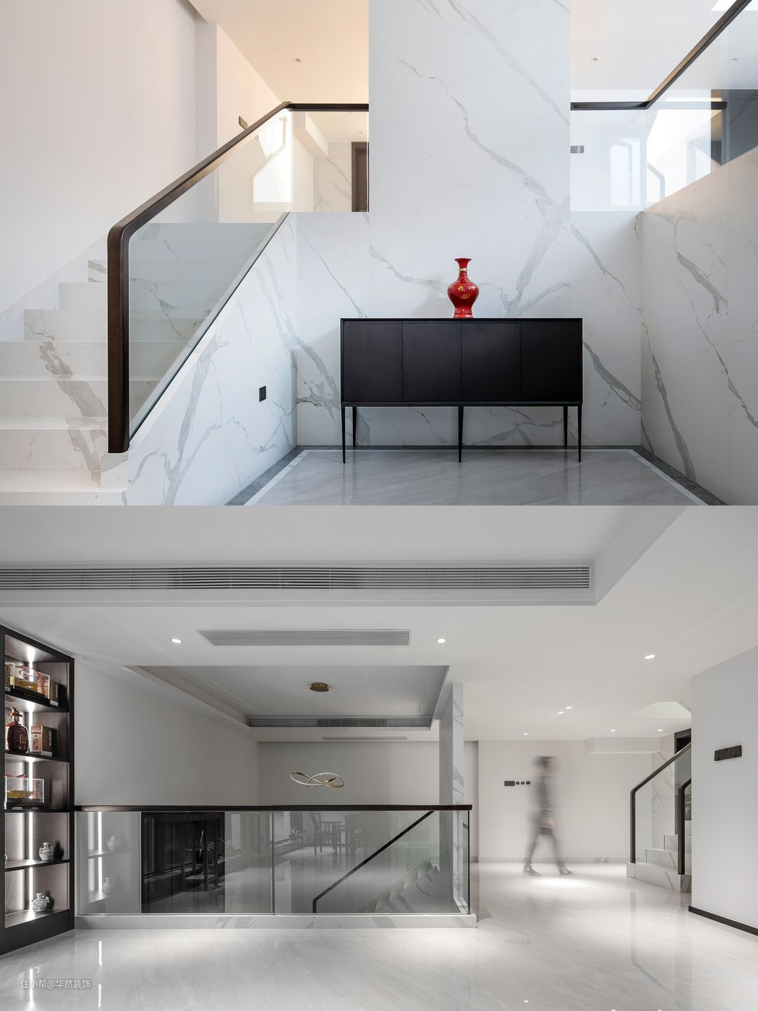 楼梯采取整块玻璃的直线条设计