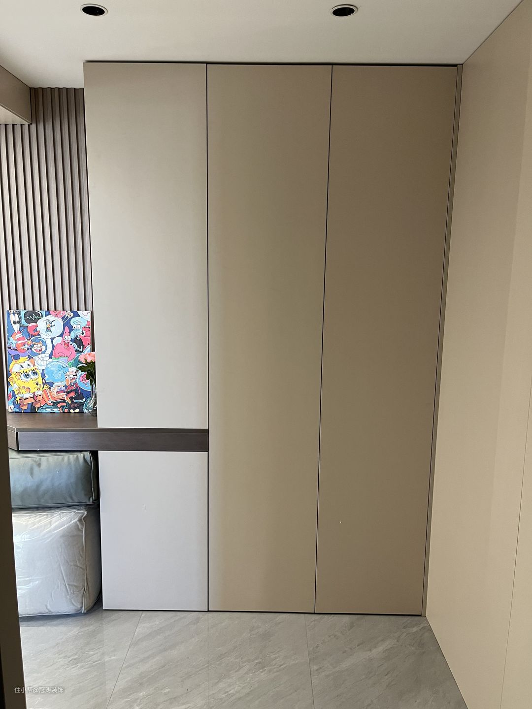 3.屋内定制柜子尽量不做跳色格,不选择亮面。柜门可选择白色或者奶茶色,可搭配原木色柜体。