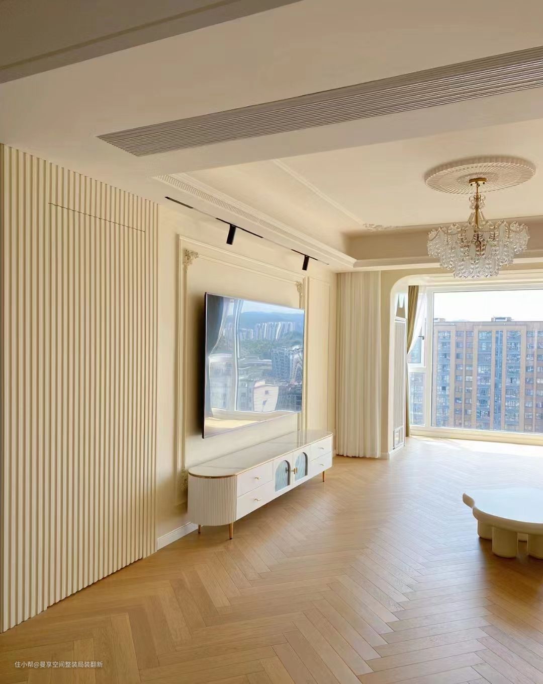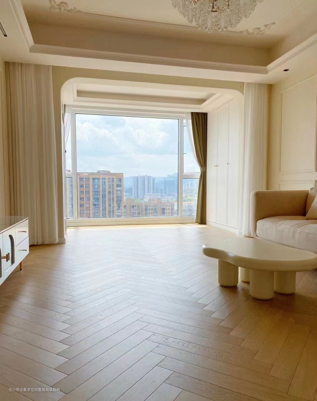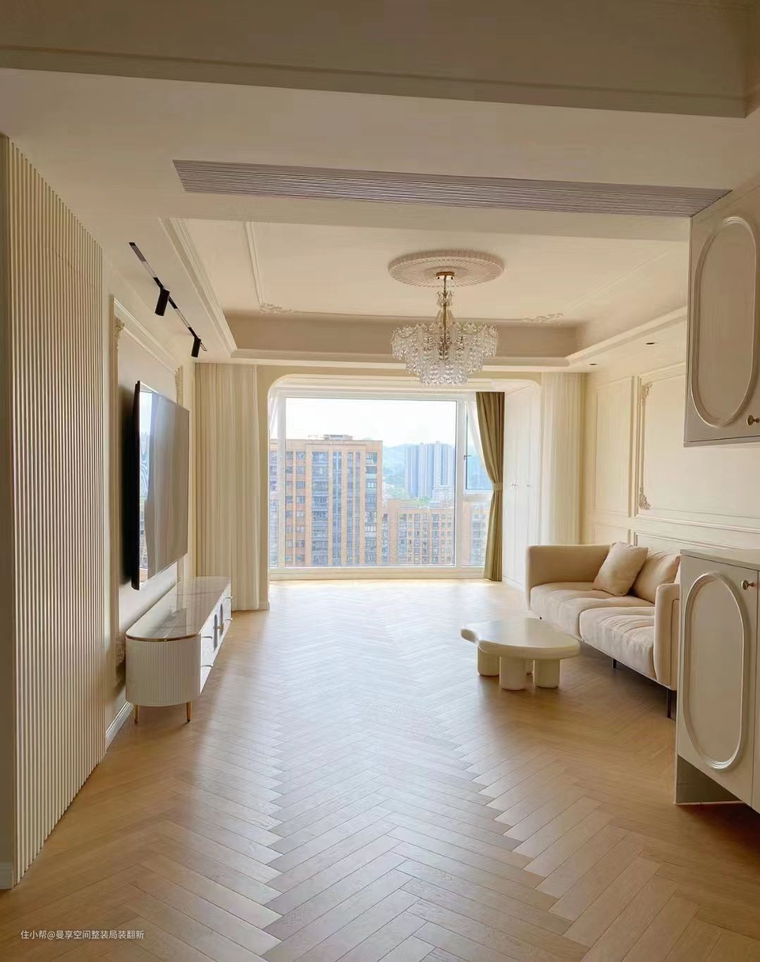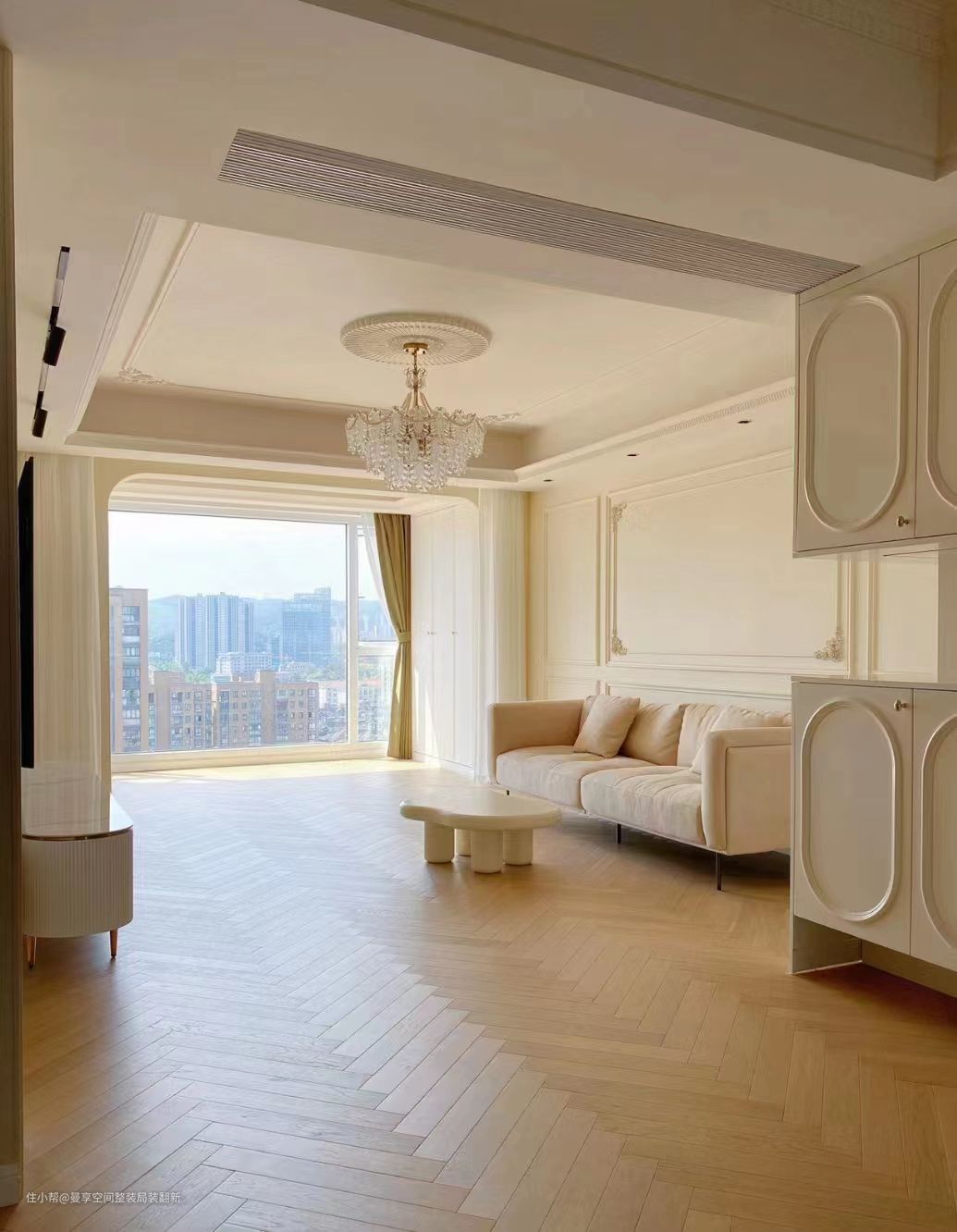 整体空间简单、纯粹,有着欧式的大方奢华,又有着极具奶油感的温馨。