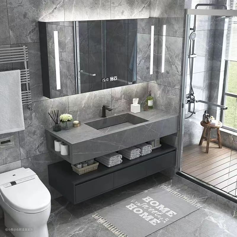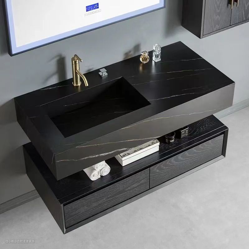 岩石材质确实大气好看,那我们可以不选择岩板一体盆,可以做岩板台面+陶瓷台盆这样,既好看又有实用性,不用担心积水问题,也好打理。