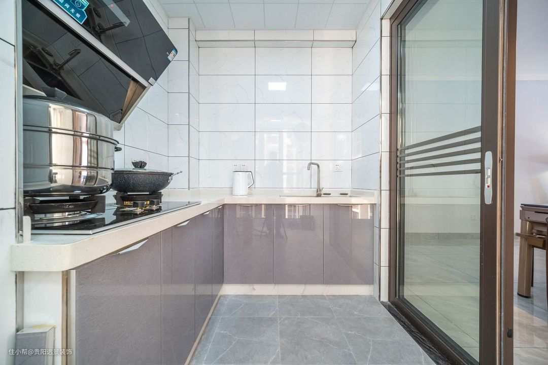 厨房是L型格局的设计,既能够用到每一个地方,实现了超大的收纳空间,空间更加的有序、整洁。