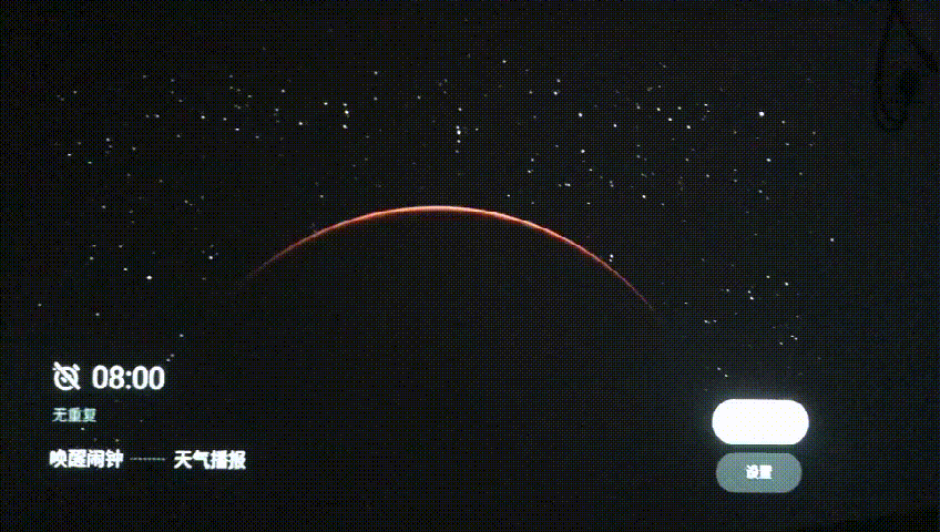 唤醒,是更有人性化的闹钟,我非常喜欢火星日出这个场景,卧室随着日出的光线逐渐变亮、舒缓的音乐也逐渐增强,这个设计很巧妙,不像手机铃声让人直接惊醒,而是采用更温柔的方式唤醒,开启一天的好心情,并且配合远场语音功能来安排闹铃也特别方便。