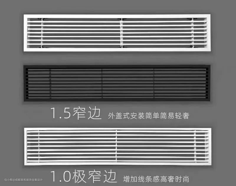 如果要求没有那么高或者预算有限,选择窄边款足够了,施工方便,价格适中。大家在选择风口的时候一定要提前确认好安装费用,避免不必要的误会。