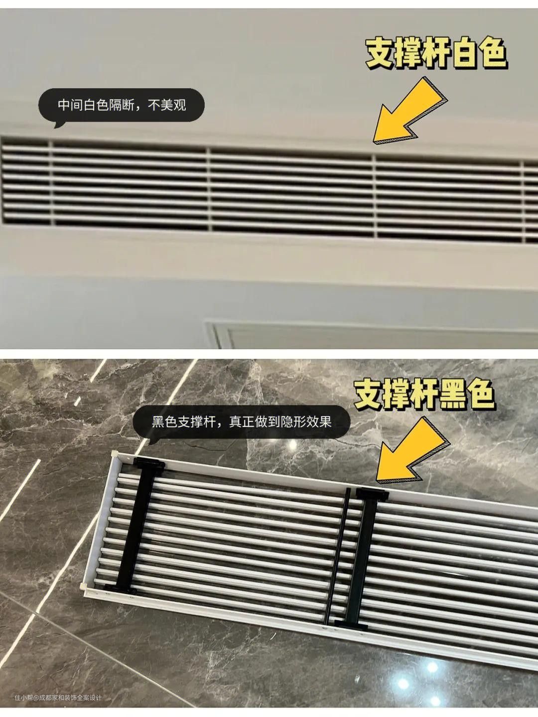 1.购买风口的时候一定要选择黑色支撑杆的款式,别选白色支撑杆,不然中间多了隔断没有极简那味儿了。