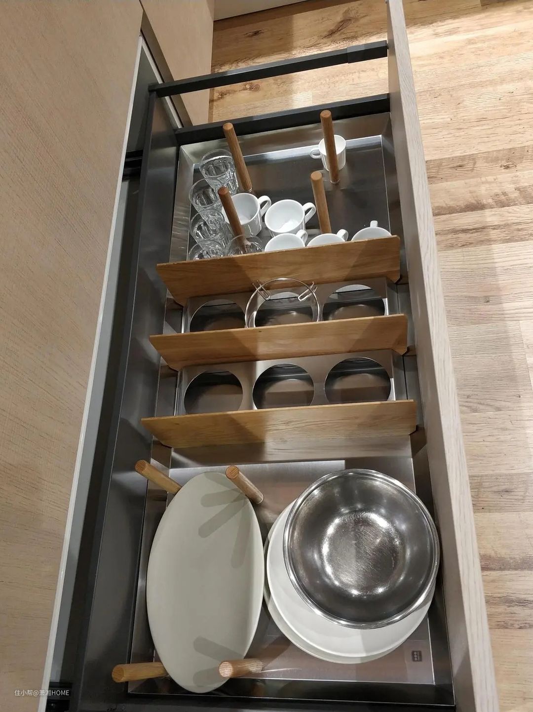 另外普及一点就是少做一些柜子,多做一些抽屉,而且大抽屉在厨房里边还是很适合的,毕竟厨房里边要放的东西还是挺多的。