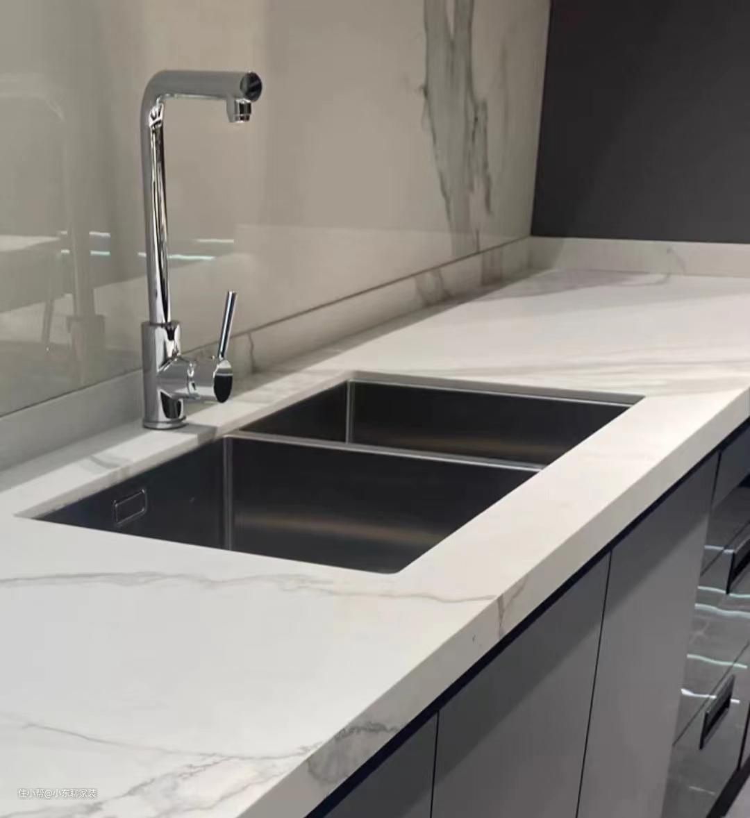 岩板材质,有它天然的优势,比如耐磨、抗划痕,不渗水渍和油污,而且质感好,颜值高。但它致命缺陷就是太脆了,所以特别不适合用于台面。