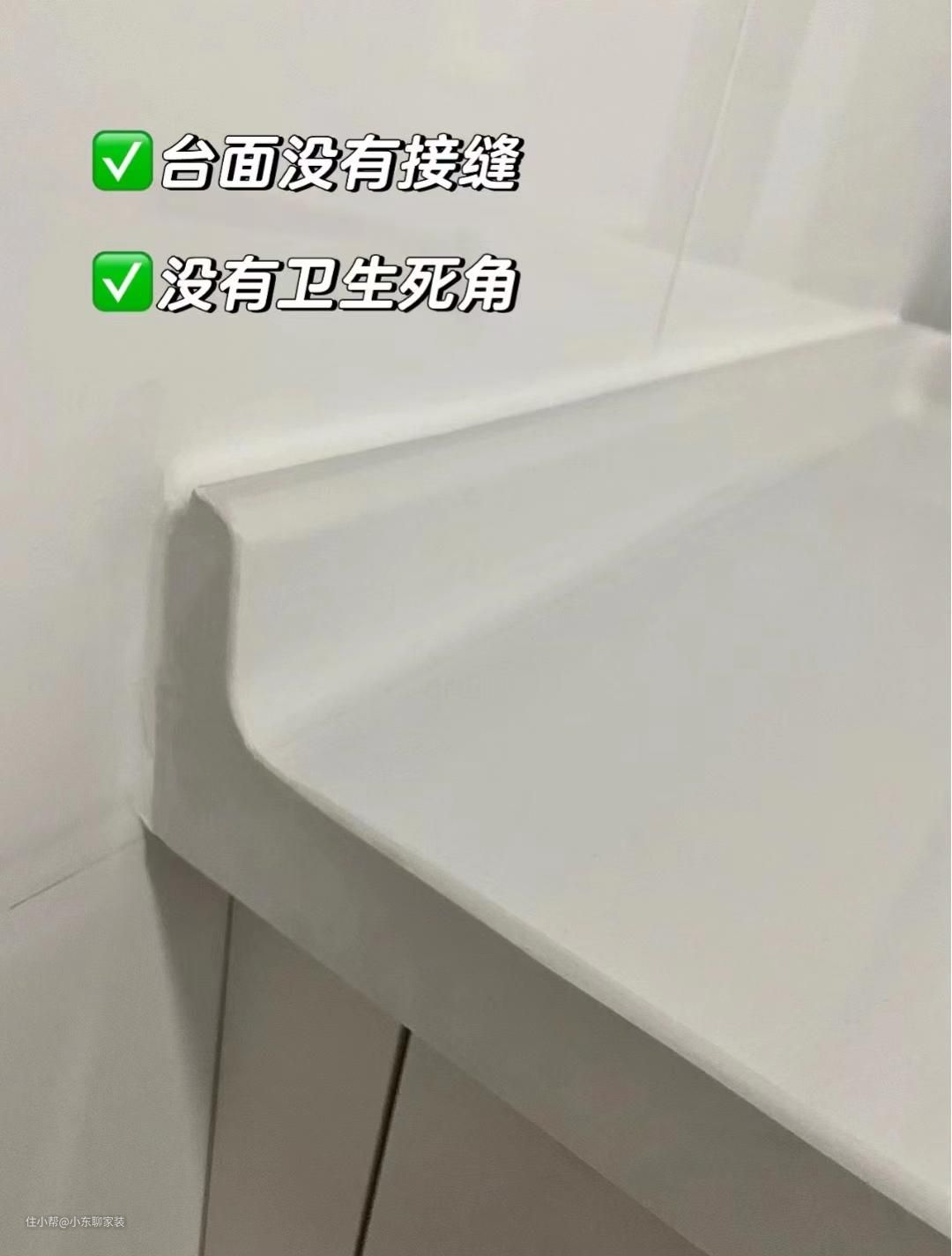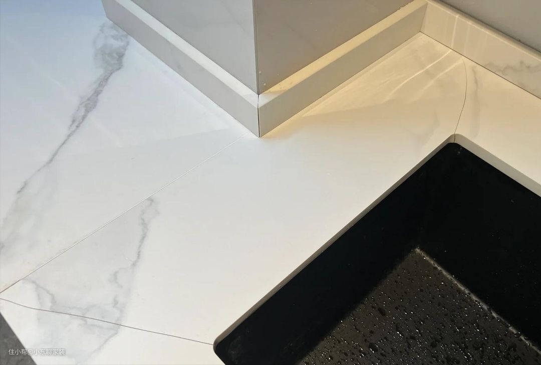 小东建议:想要台面整洁大气,且没有卫生死角,建议直接取消挡水条。但这种做法,对施工难度要求高,墙面与台面不能有缝隙。所以,建议加钱做成弧形一体挡水条,不仅是美观好看,关键是少了卫生死角。