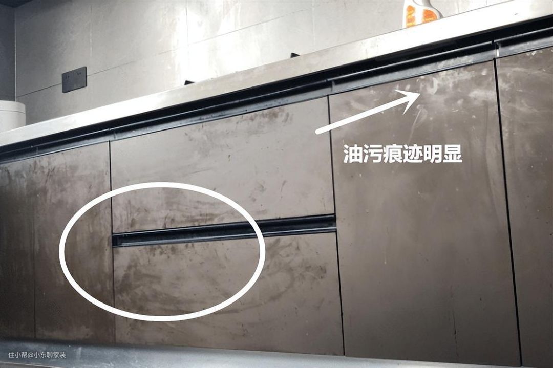 然而,这几年大火的肤感膜柜门,好看却不好用。它自身致命缺陷就是极其不耐脏,一按一个手印,还有各种油污和水渍,根本擦不掉。