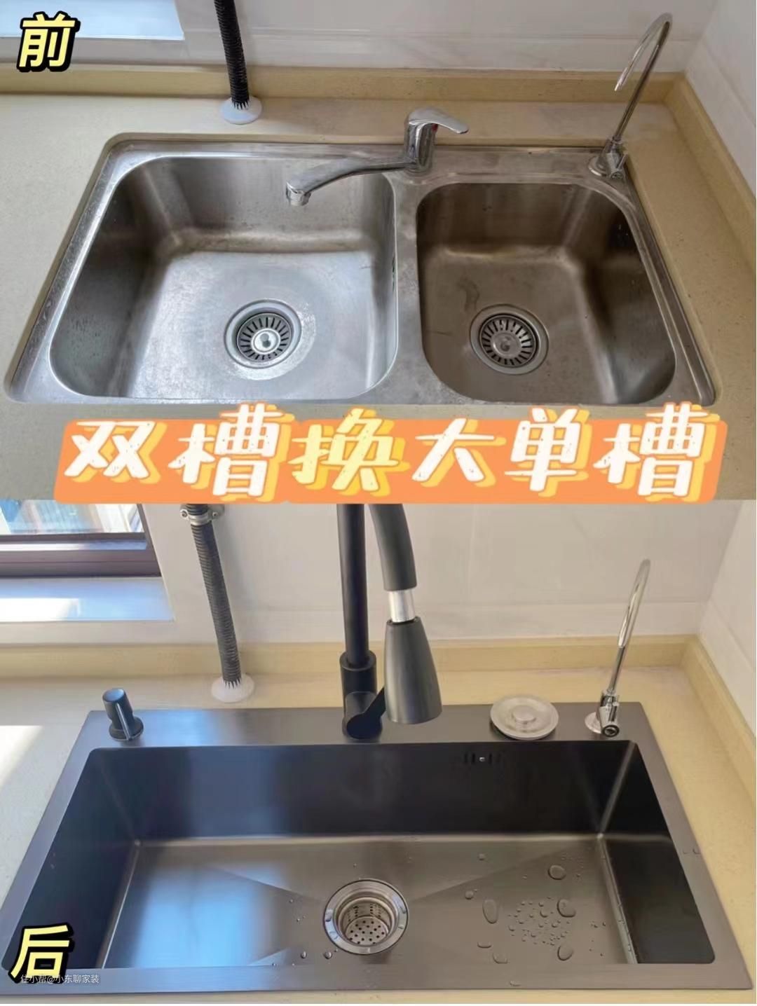 小东建议:建议装大单槽,不论是洗锅洗碗,还是洗菜都方便。而且,大单槽加个沥水篮,就能切换成双槽。但是双槽,你无论如何也变不了单槽。