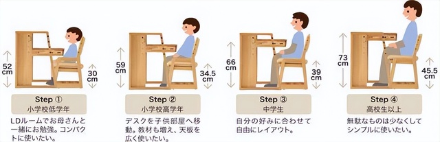 学龄儿童的身高每年都在长,普通桌椅高度固定,无法适应成长中孩子的身高,长期使用会导致坐姿不正确,从而引发体型(脊椎发育弯曲等)和视力问题,因此专用的儿童学习桌椅都是高度可调,可以适应孩子不同成长阶段的使用。