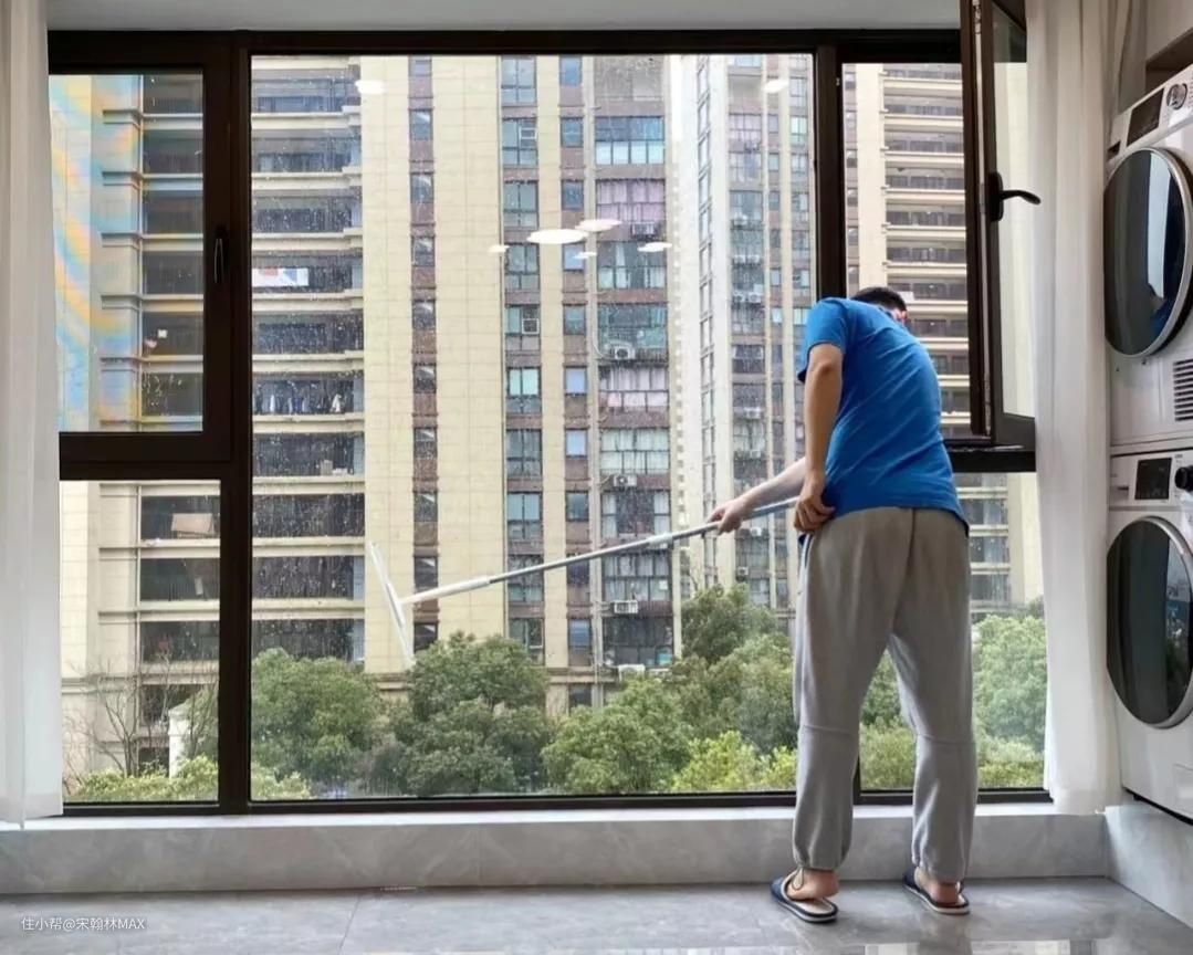 有开窗的落地窗还好,使用一些辅助工具还可以清洁,但要是全封闭的落地窗,连个窗口都没有,工具都伸不出去。