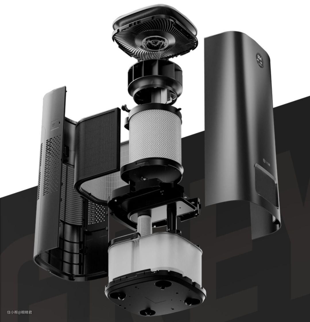 2️⃣进风位置位于机器中间,远离地面灰尘,加湿用的空气先经过H13级别滤芯过滤再经过加湿滤网,产出清新水润空气。