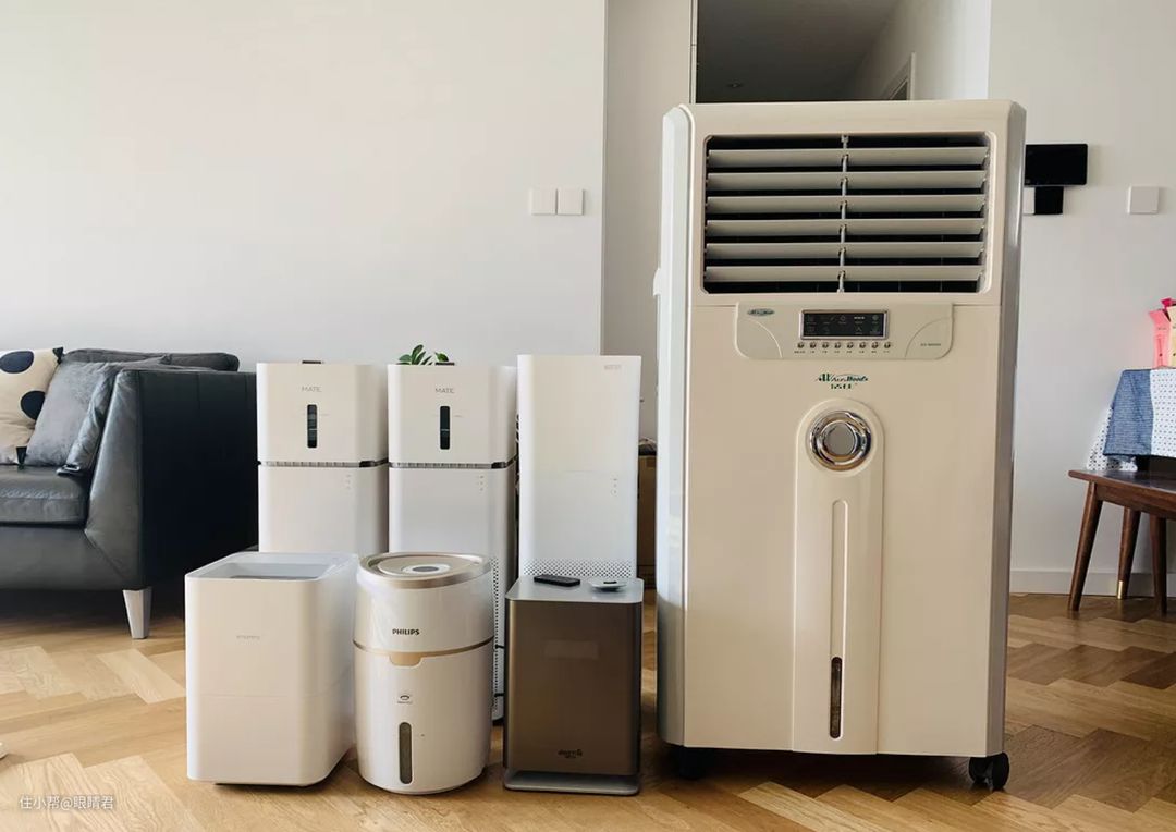 上图是19年家里加湿器合影,当时为了加湿量,甚至购买了一台商用的大型加湿器,40L水箱,加湿量确实很给力,但是缺点就是体积巨大、工作噪音大以及湿帘太贵。
