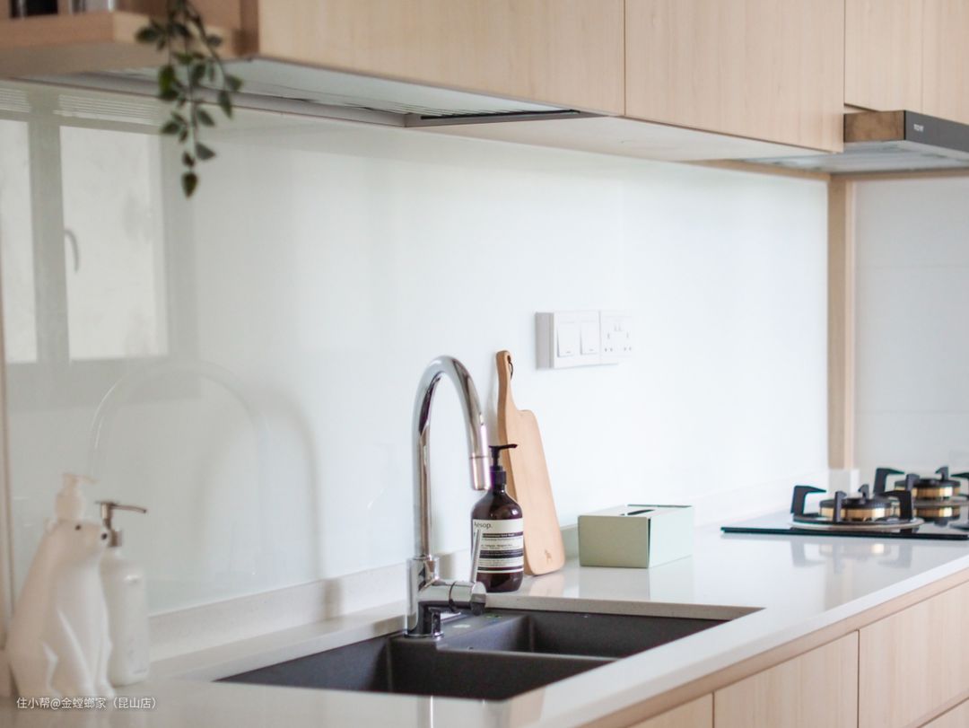 在北欧风格的室内装修中,厨房通常选择简洁、明亮、自然的材料和颜色。以下是一些选材和装修建议: