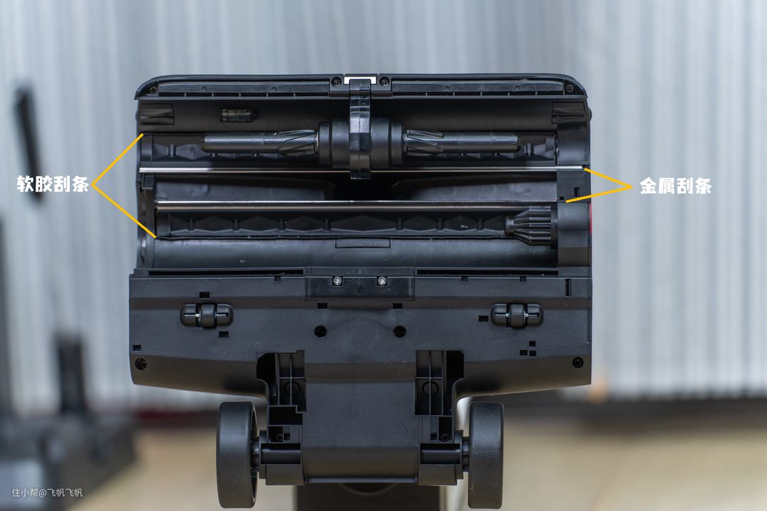 在两个滚刷槽内,分别设置了金属刮条与软胶刮条,在无论是清扫还是自清洁上,这两种刮条都能让主刷很好的把垃圾卷入吸尘范围内,又不沾到滚刷槽的内壁上,还能在自清洁时候的把水刮干净,让清洁效果更佳。