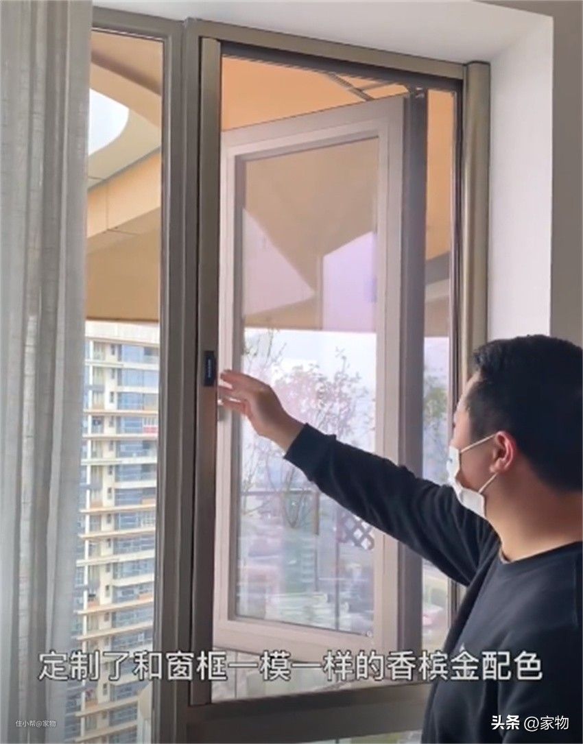 开窗时纱网拉下来防蚊防尘,关窗时将纱网收回去,既不占空间又不阻挡视野,高层用舒适感高。