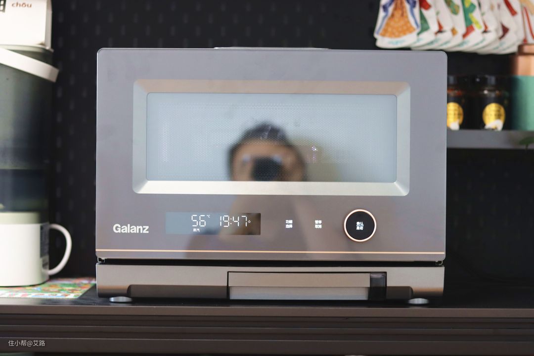它的整体体积并不比传统微波炉大很多,把它放在各种烤箱和蒸烤箱中间,也显得个头没那么大,很难想象它小小的身躯居然集成了这么多种功能!