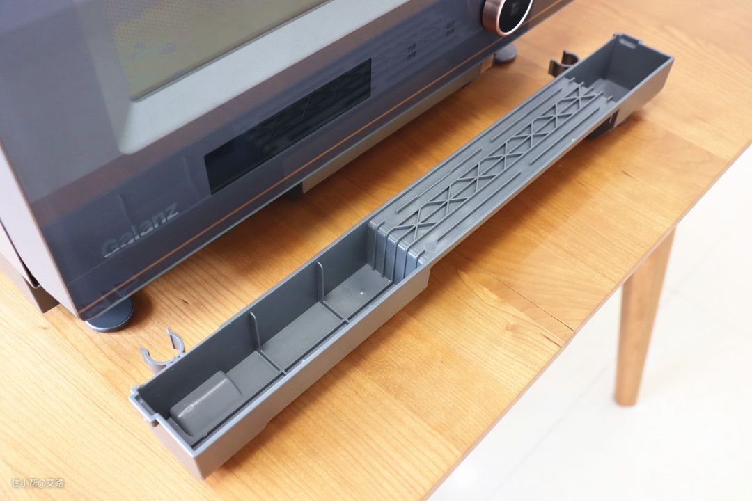 机器的底部是接水槽和水箱。水箱容量在300ml左右,可用于一般的蒸气微波加热和纯蒸模式。