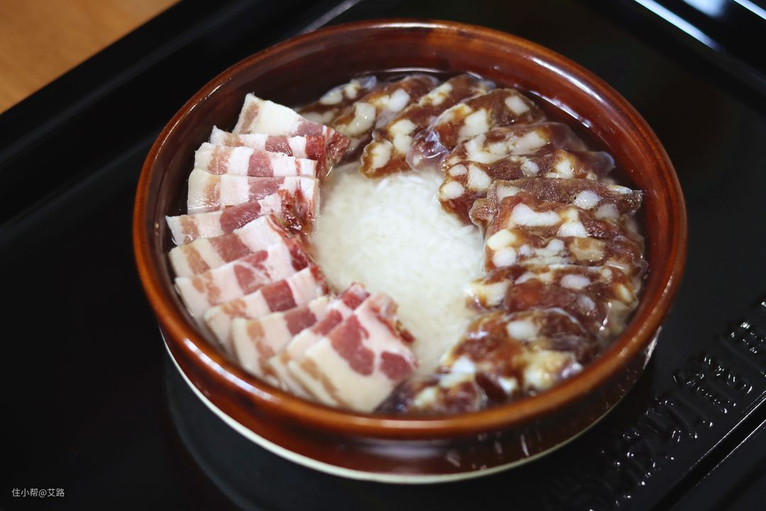 这里我用的是广式腊肠和巫山腊肉。广式腊肠是咸甜口的,肥瘦55分,巫山腊肉则是咸口带有淡淡的烟熏味,用的是非常漂亮的五花前段,这两个是艾路非常喜欢的腊味饭搭档~