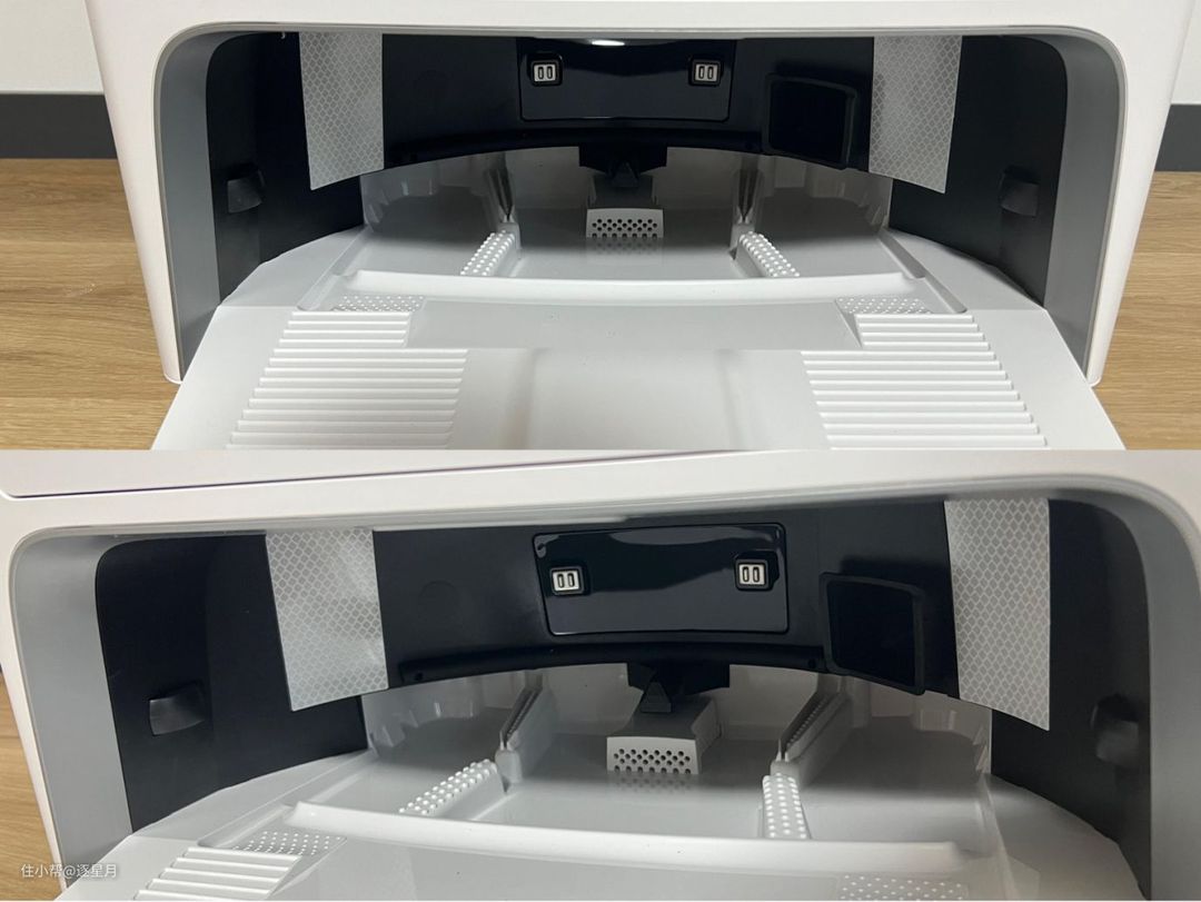 它有2条烘干风道和4条立体风路,可以从上、下、左、右360°全方位烘干拖布,连同清洁槽和基站内部都能烘干,可以最大程度减少细菌和异味的产生。整个过程只需要2小时。