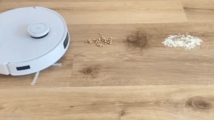 实测中,我用了用土豆粉替代灰尘、黄豆模拟常见的颗粒物以及毛发,看看清扫效果怎么样。