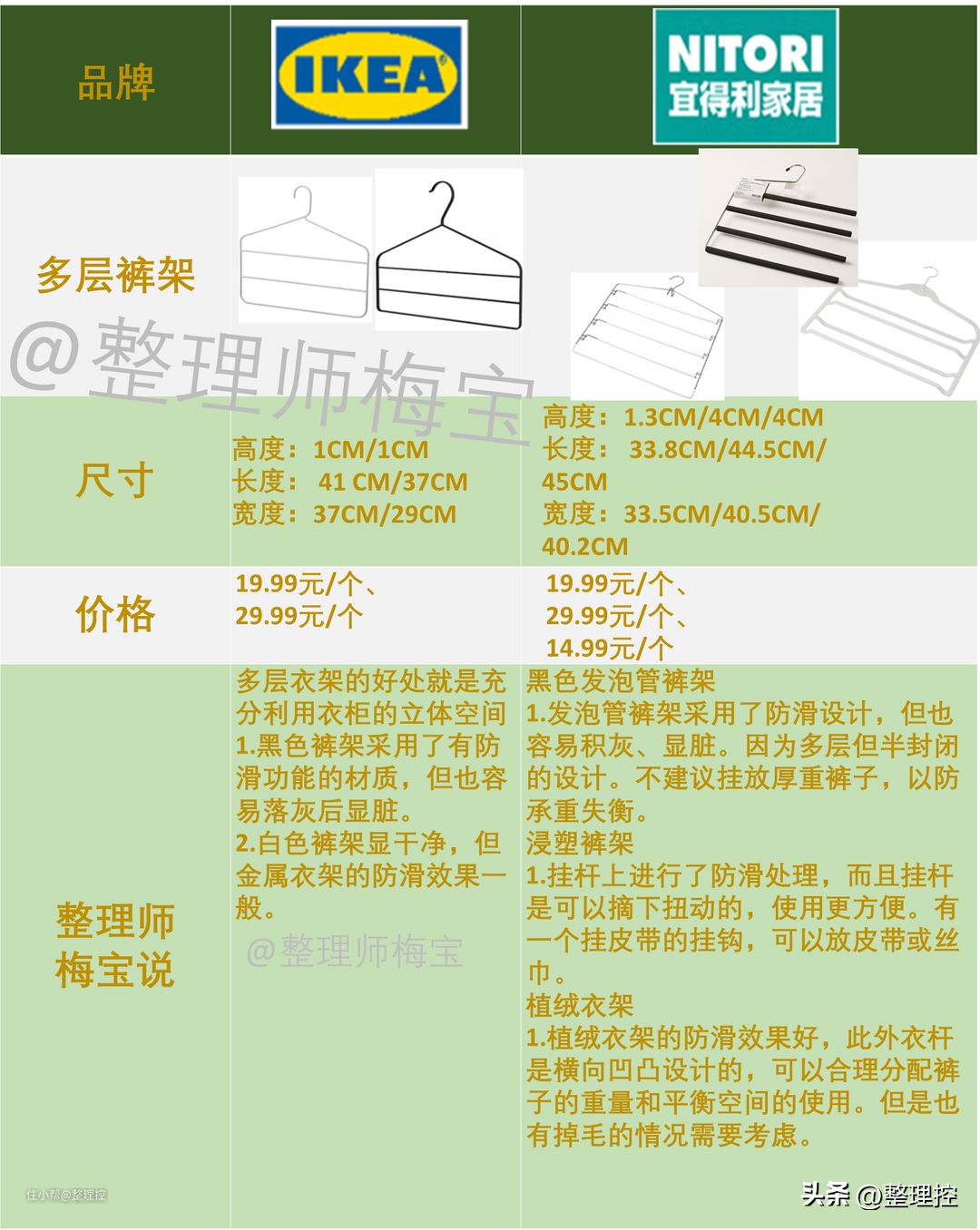 4.在宜家、宜得利和无印良品三家家居品牌中,推荐大家可以试试正向鹅型衣架和植绒的多层裤夹。