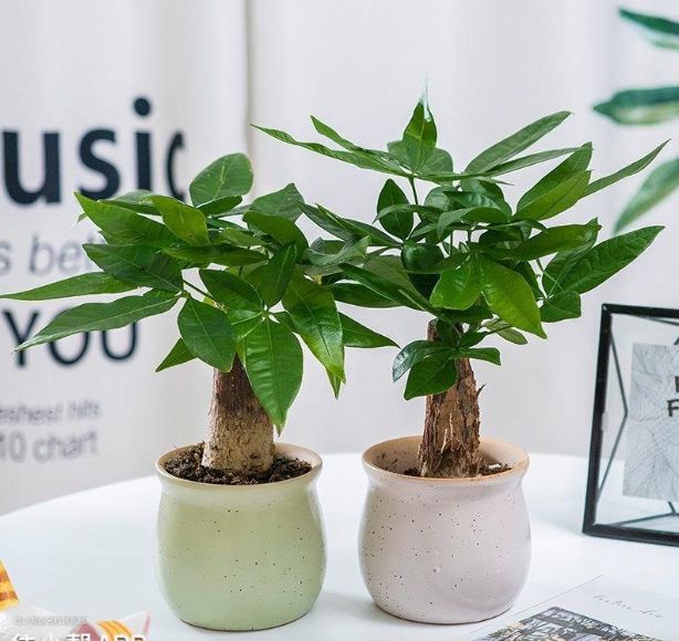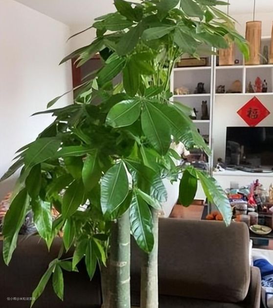 发财树可大可小,小盆放在博古架等地方,大的可以直接发在大盆里,摆在橱柜旁边。