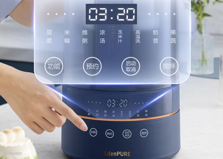 10个菜单功能可以任意选择,还能支持12小时预约功能,触控操作,也比较方便。杯身使用的是高硼硅玻璃,想冷打或者热打都可以,不伤机器。