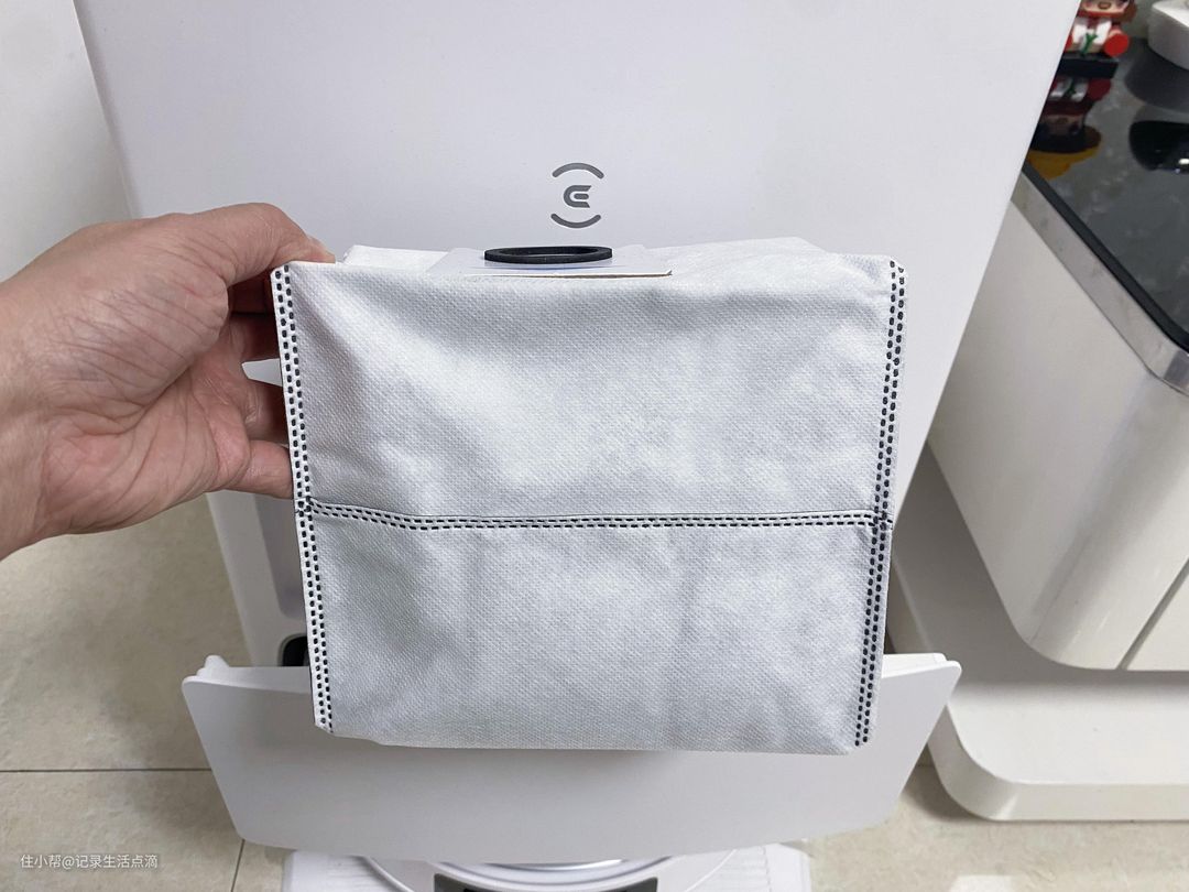集尘仓设置在水箱下方,采用了抽屉式设计。科沃斯T20 MAX配置了容量为3L的超大抗菌尘袋,每次更换差不多可以75天不用倒垃圾,太省心了。