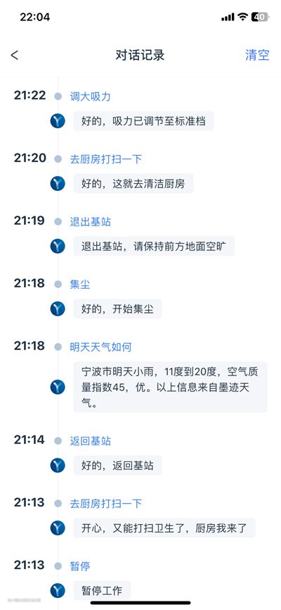 原本各项操作需要通过App或者按键来实现,现在动动嘴巴就可以了。例如你在厨房烧饭做菜时,油腻的双手又无法进行操作,这时你只需优雅地唤醒扫拖机器人,说一声“OK,YIKO,去厨房打扫一下”,然后扫拖机器人就会自行前往厨房进行清洁。除了一些常规的操作指令外,你还可以问它天气、时间等,YIKO智能语音助手也能回答你。