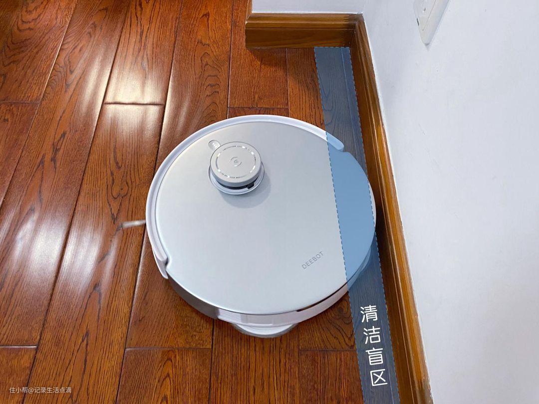 圆形设计的扫拖机器人清洁地面时都会存在清洁盲区,主要是沿边清洁时拖布无法清洁到靠墙部位,就如上图阴影区域,这个问题曾经也困扰我许久,每次把房间地面都清洁干净了,唯独靠墙一圈一摸厚厚一层灰。科沃斯T20 MAX就很好地解决了这个痛点,它加入边角深度清洁功能,可以彻底清洁家中的边边角角。