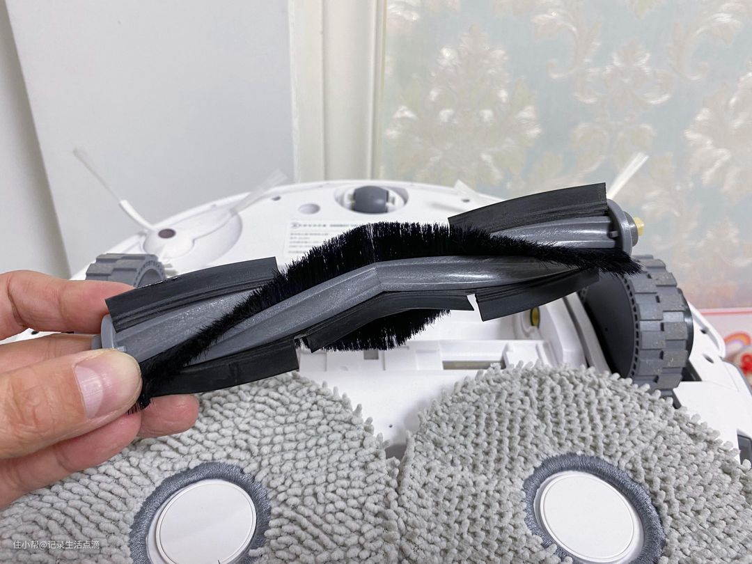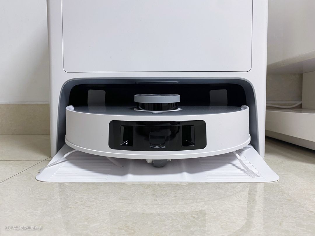 扫拖机器人底部,也是常规设计,不过这次拖布可实现自动抬升,如果只使用扫地模式的话,就不用取下拖布那么麻烦了。