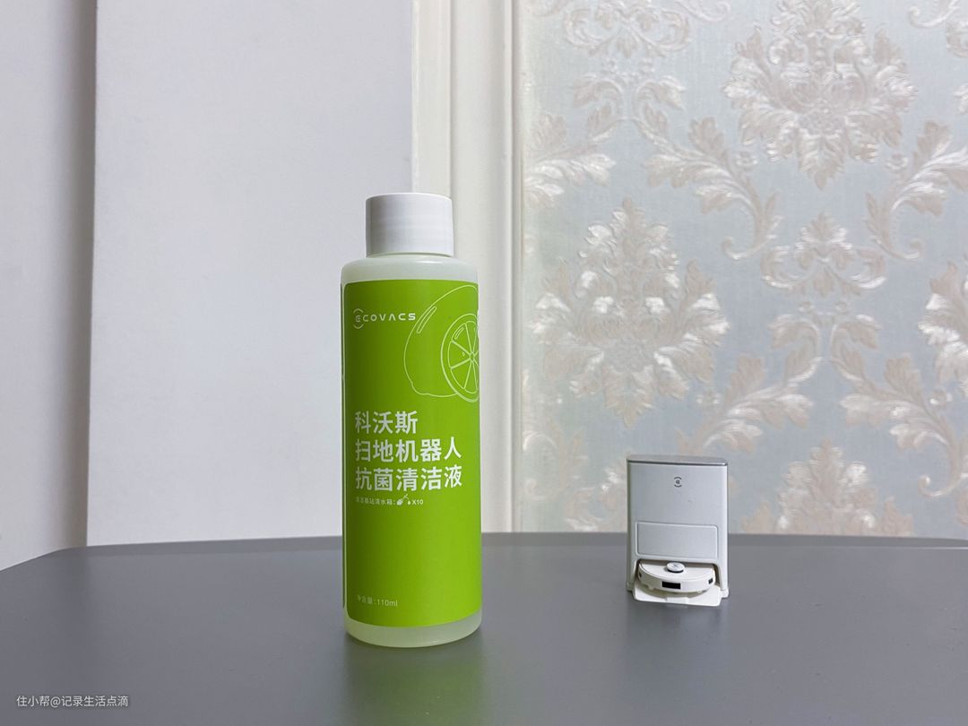 科沃斯的抗菌清洁液,可以添加在清水箱中,如果加装了自动上下水模块就能实现自动添加。清洁液不仅可以更彻底地清洁拖布,而且含有的抗菌成分可以实现拖布、地面、污水箱全水路的抗菌效果。