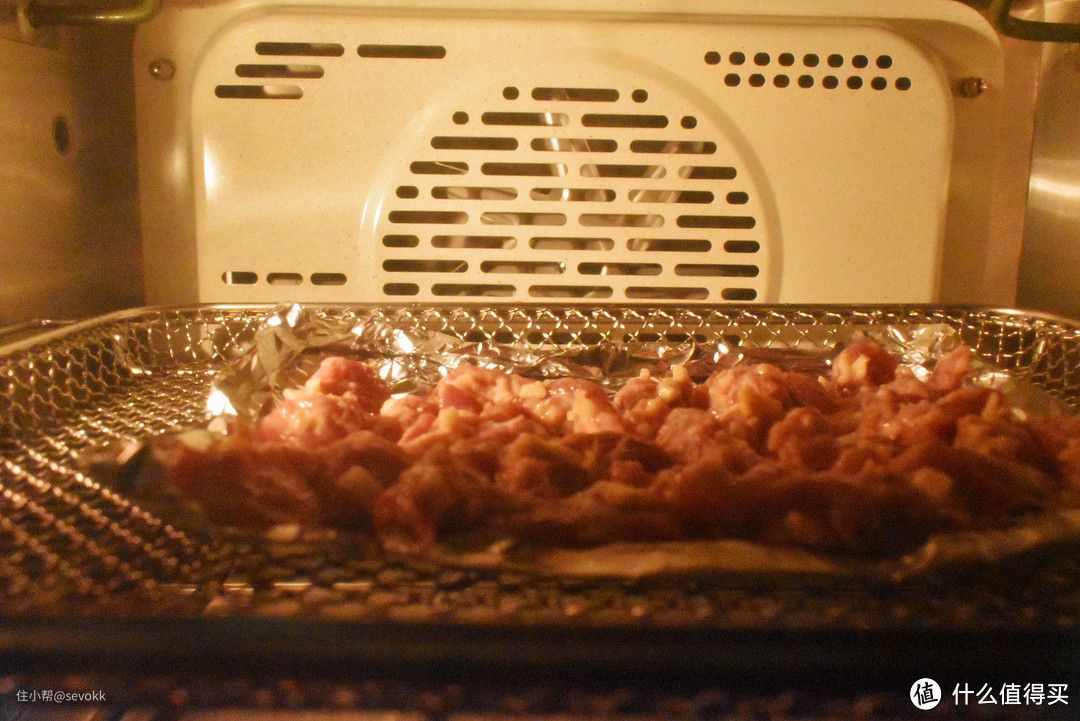 在功能上,特别值得一提的是它的空气炸,真的是非常非常好用。行业内特有的2000转/min双速风机,不用预热制作更快。这里我使用的是鲜炸小酥肉,将新鲜的猪肉切成条形三层肉,用刀拍拍,将食用盐蒜蓉、胡椒粉等各种佐料放入容器中混合腌制10来分钟。