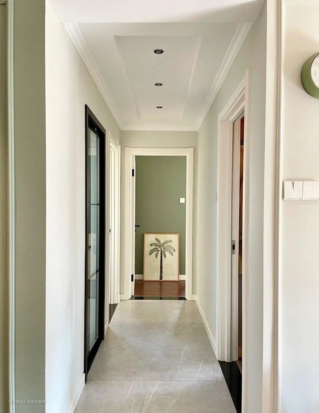 过道连通着三个卧室和一个卫生间,目之所及,清清爽爽。