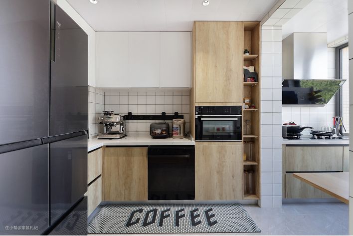 原本的厨房空间不大,为了提高空间面积和使用舒适度,将厨房与生活阳台打通,改造后空间开阔宽松且实用。电器区与烹饪区分离开,各司其职又彼此相连,实用性高,安全系数也好。