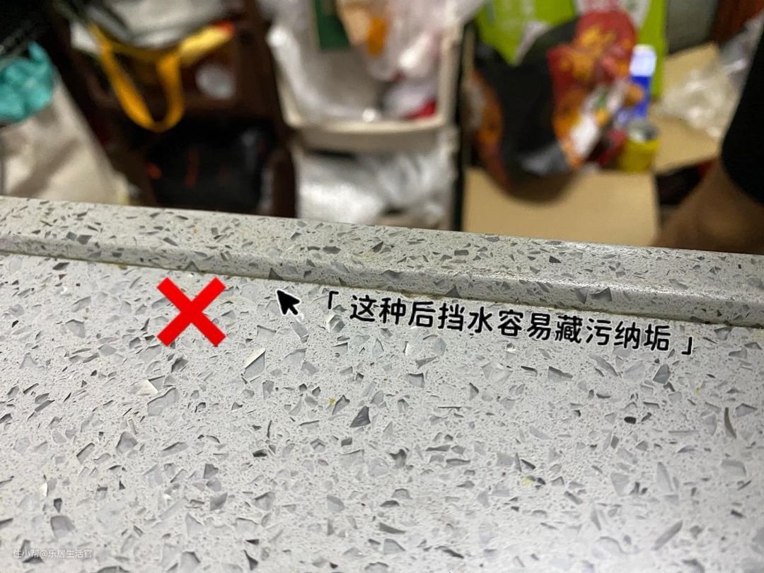 很多商家对业主定制台面时前面都加挡水条,其实这个没有必要,前挡水条既不美观,也容易藏污纳垢。
