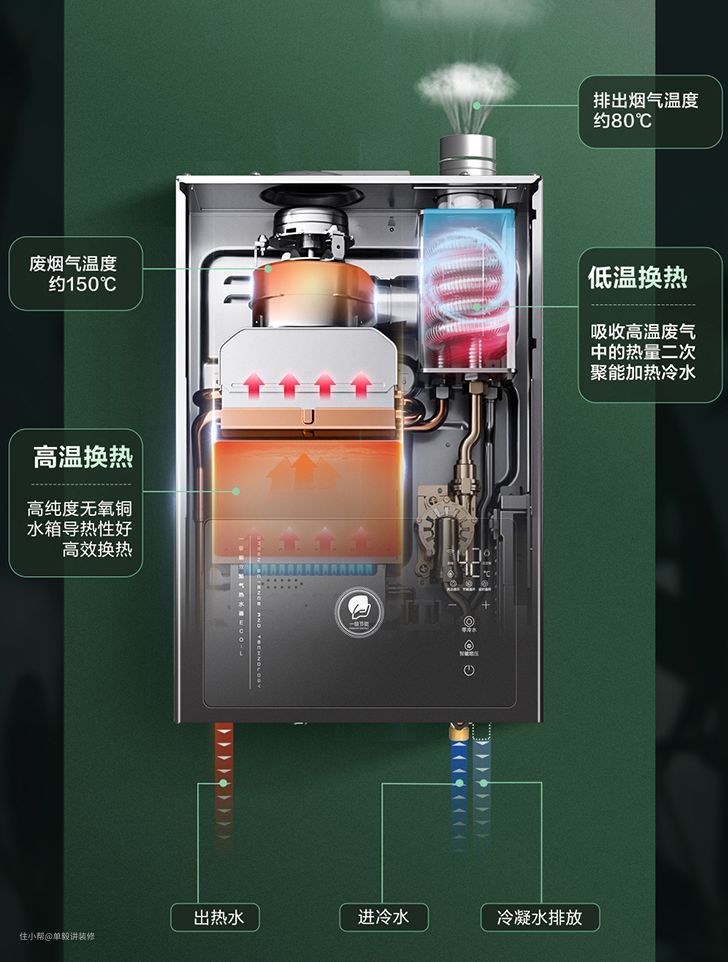 冷凝式的核心是节能,大概能比其他2级能效产品节约10%左右燃气。