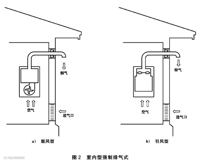 ▲强制排气式分为两种,左侧为鼓风式,右侧为引风式