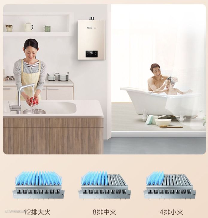 往极端点想,假如只有1段,也就是所有火排都燃烧,那最小火力就不可能太小,水量和进气量的匹配范围也会小很多。碰到突然多点用水或者关停重开,就很可能出现水温大幅波动。