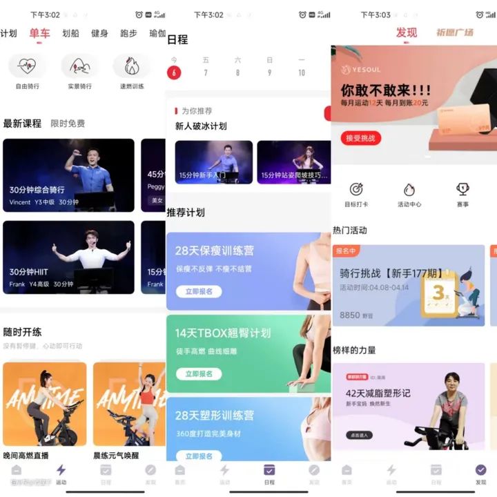 别小看APP,里面的教练是真的专业,而且动感单车模块总共分为自由骑行、实景骑行和速燃训练,每一节课程可以自由选择,还会有免费课程学习哦!