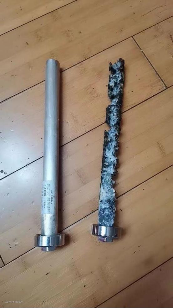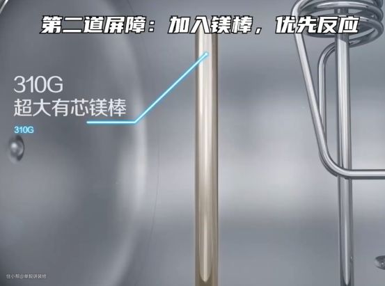 失去搪瓷保护后的第二道屏障,一旦镁棒开始消耗,就证明搪瓷肯定有漏的地方