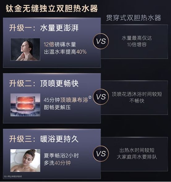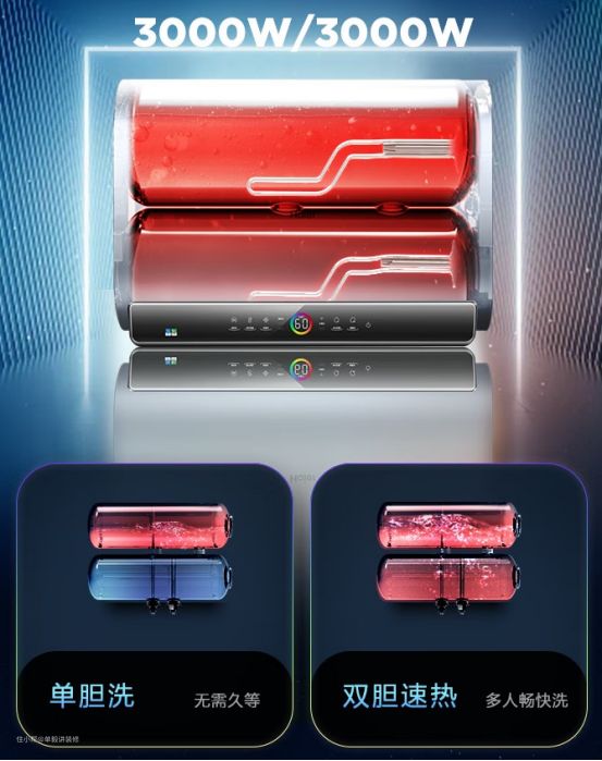 双胆做不到快速升温15度,但双胆交替加热,不但水温高,而且水量也更大。