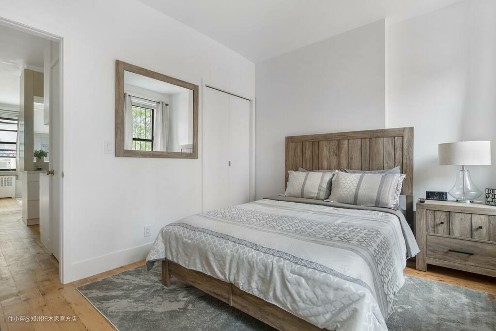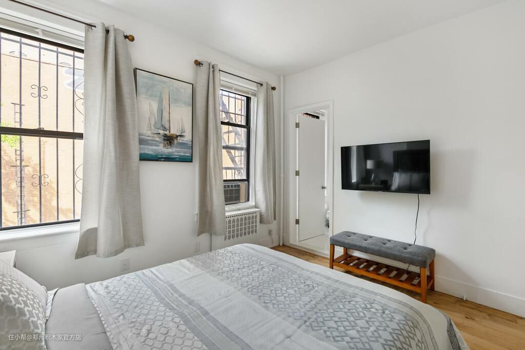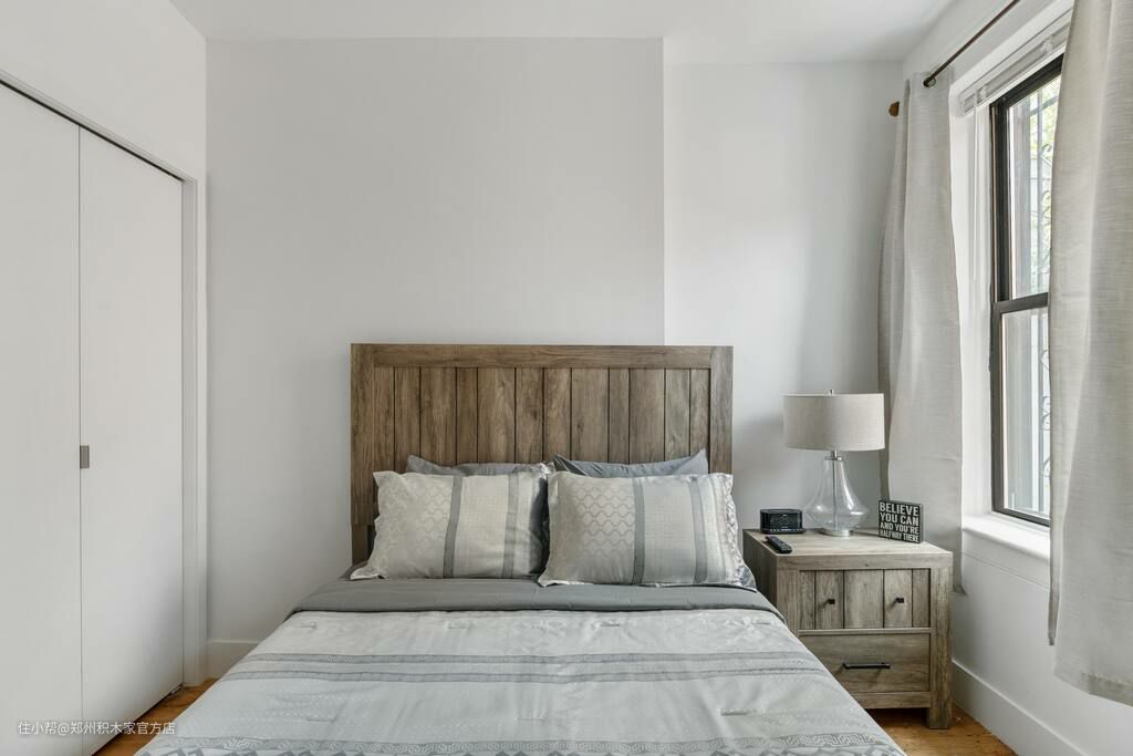 卧室的设计充满了实用性和舒适性。储物柜为卧室提供了更多的储物空间,可以存储各种衣物和床上用品,使得卧室更加整洁和有序。电视和矮凳的设计也为卧室增添了更多的舒适性和娱乐性。矮凳提供了一个舒适的座位,可以在这里放松身心,观看电视节目或阅读书籍。