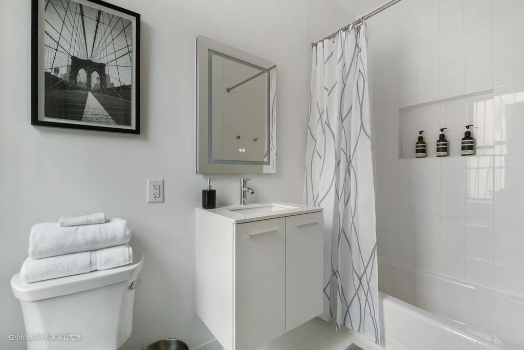卫生间设计了浴缸,劳累一天泡个热水澡,褪去一身疲劳,简单的浴帘也能做都干湿分离。