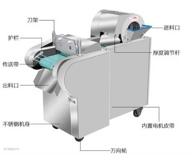 复杂的知识这里就不说了,简单来说:通过让高速旋转的切刀,或是高速旋转刀片来切割蔬菜,并且采用不同刀具可把蔬菜加工段、片、条、丝、块等不同形状。